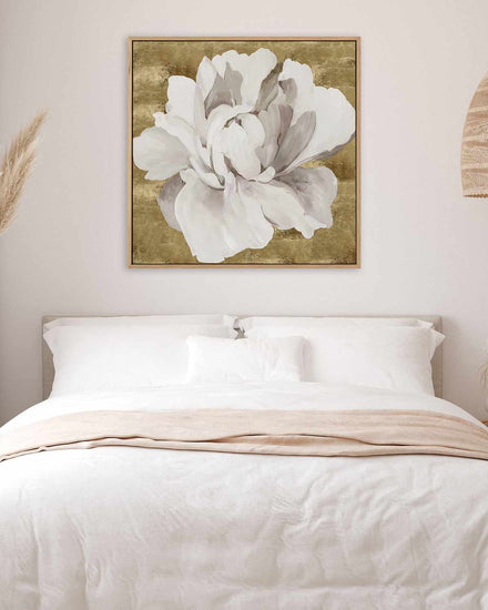 Shop stunning floral art with 'Gold Flower I' featuring a white flower on a gold background. Our canvas wall art is proudly printed right here in Australia with the highest-quality materials and professional printers. You can trust our craftsmanship and attention to detail when it comes to decorating with framed art from CANVAS Art Print Co.