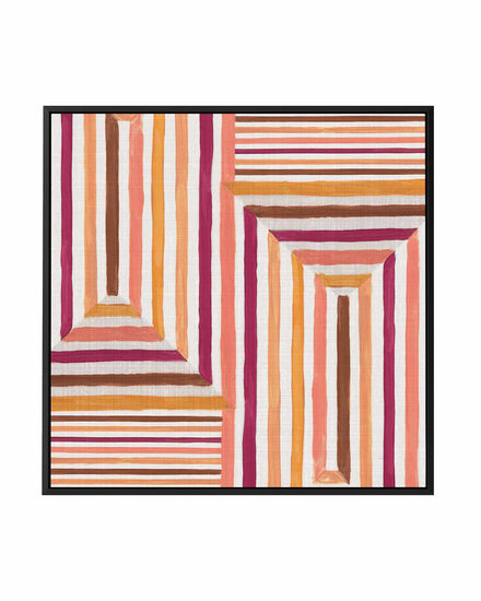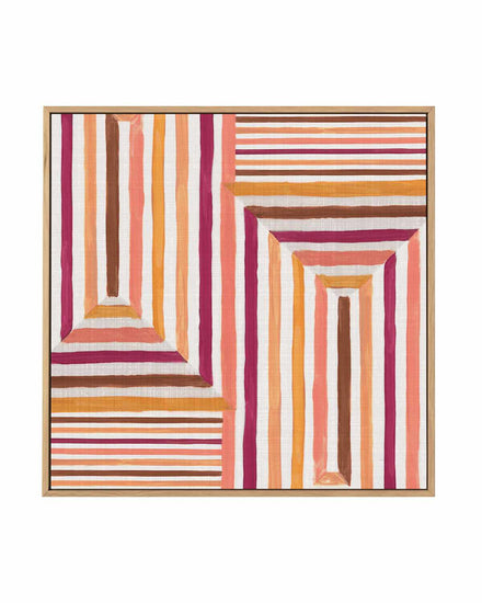 Enhance your home's decor with 'Mayan Labyrinth I', a framed canvas print featuring an abstract geometric design with vibrant red and coral tones. Whether it's for your living room, dining room, bedroom or office, this high-quality artwork is the perfect way to inject some modern style into your home.