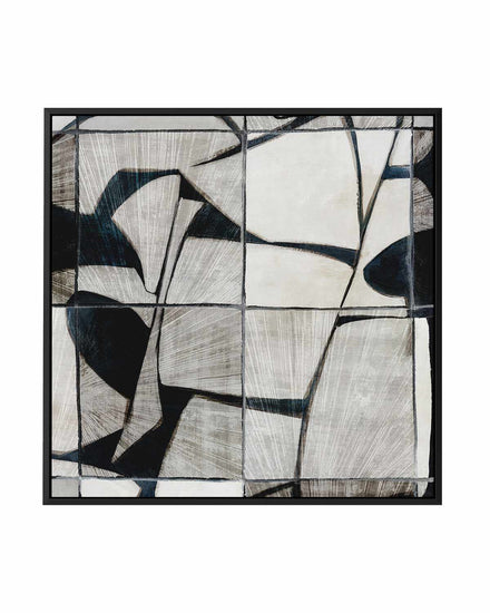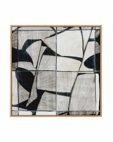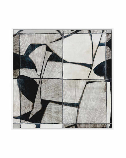 Enhance your home's decor with 'Mosaic Tile', a framed canvas print featuring black and grey abstract patterns forming a beautiful tile design. Whether it's for your living room, dining room, bedroom or office, this high-quality artwork is the perfect way to inject some modern style into your home.