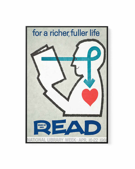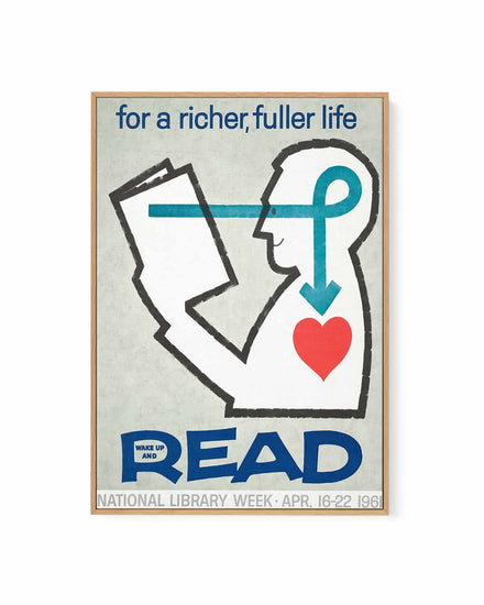 Enhance your home's decor with 'Wake Up & Read Vintage Poster', a vintage poster framed canvas print featuring an education poster from 1961 for National Library Week "For a richer, fuller life wake up and read". Whether it's for your living room, dining room, kitchen, bar or office, this high-quality artwork is the perfect way to inject some retro charm into your home.